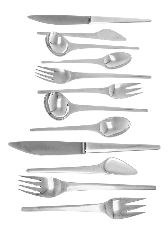 a sterling silver flatware set, Caravel pattern, comprising:8 dinner knives7 dinner forks7 salad forks7 soup spoons7 teaspoons8 butter spreaders1 sauce ladle1 serving fork1 serving spoon