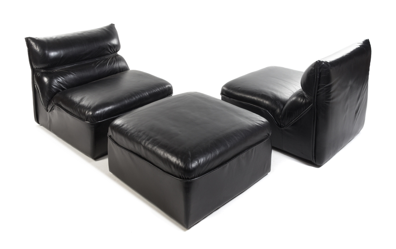 a pair of lounge chairs, with an ottoman