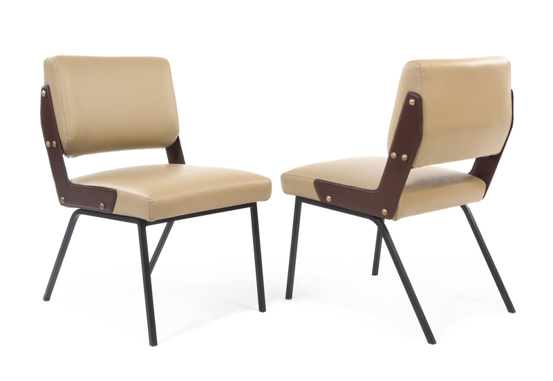 leather, enameled steel and brass
