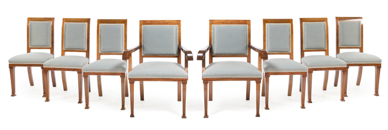 a set of 8 dining chairs, comprising 2 arm and 6 sides