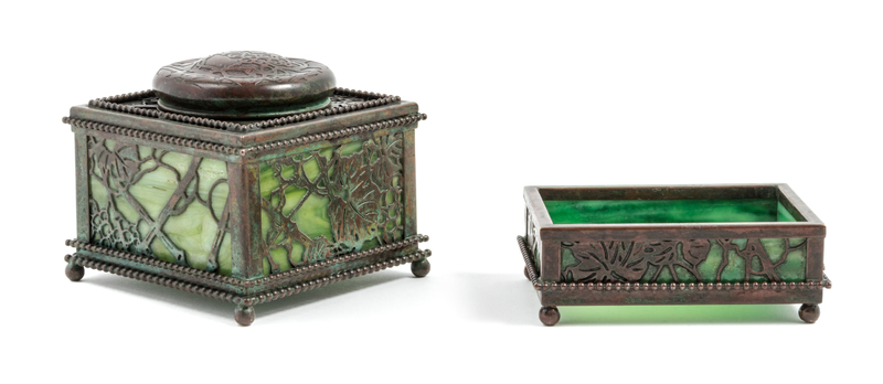 a group of two Grapevine pattern desk articles, comprising an inkwell and small box
