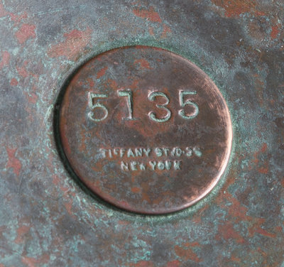 stamped Tiffany Studios New York to interior of shade, oil font stamped Tiffany Studios New York 5135