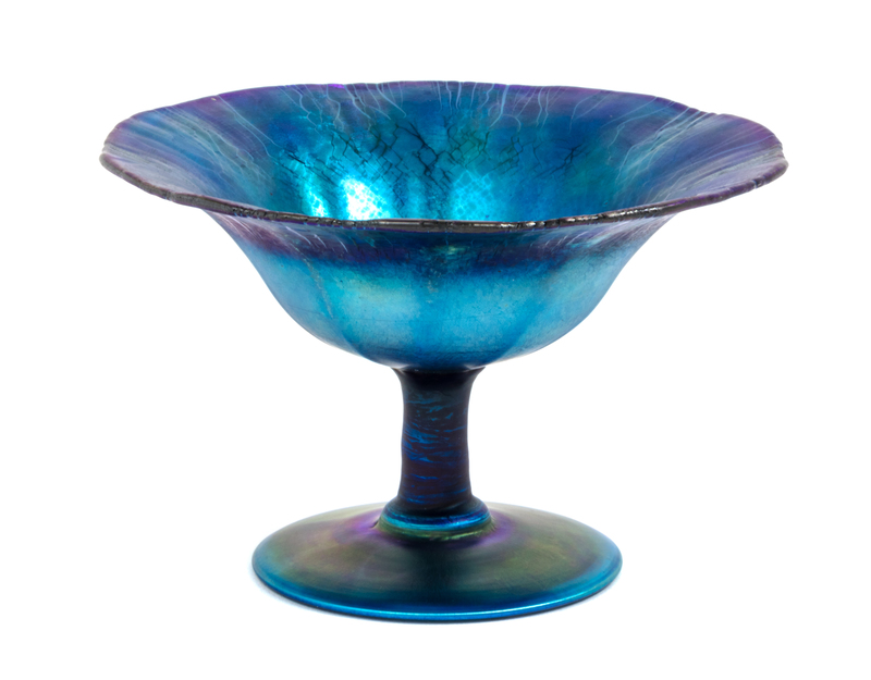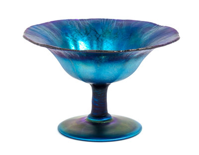 a blue Favrile glass compote