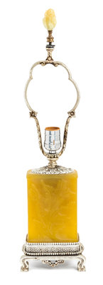 an acid cut back lamp, of rectangular form with foliate decoration, with beaded and Greek key decorated mounts