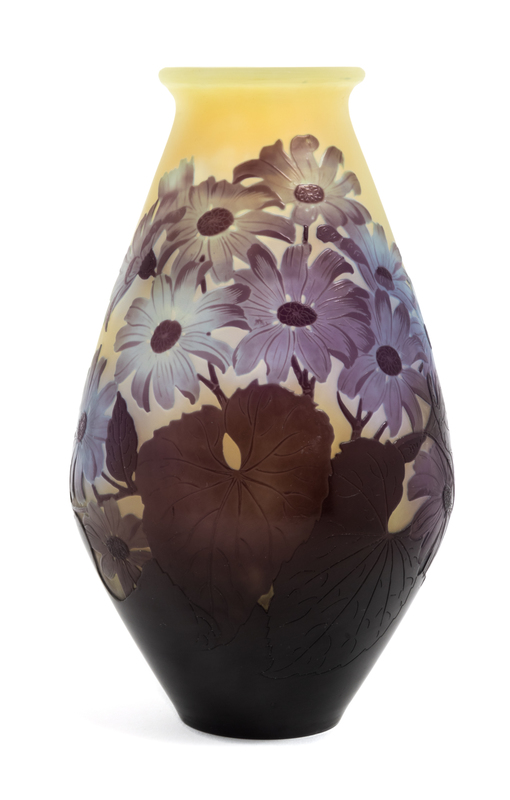 a cameo glass vase, with daisy decoration