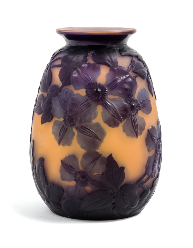 a mold blown cameo glass vase, with clematis decoration