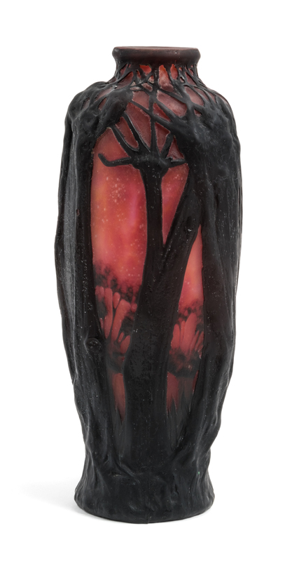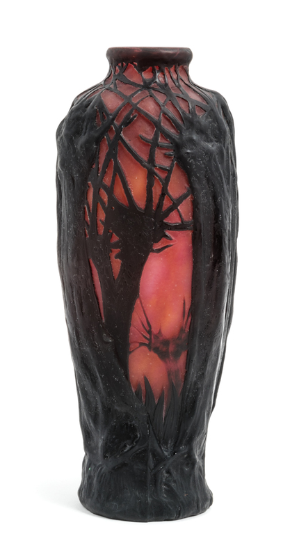 a mold blown cameo glass vase, with forest decoration