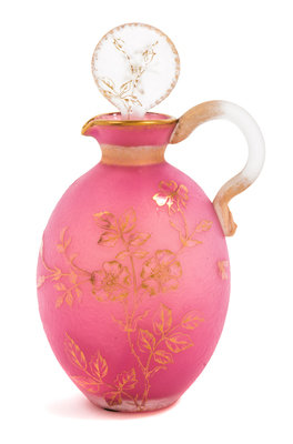 a gilt decorated cameo glass cruet, of handled form with floral decoration and matching stopper