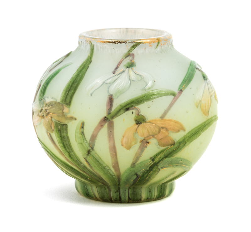 a cameo glass vase, of round form with floral decoration