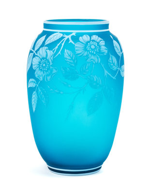 a cameo glass vase, of ovoid form decorated with flowers and a butterfly