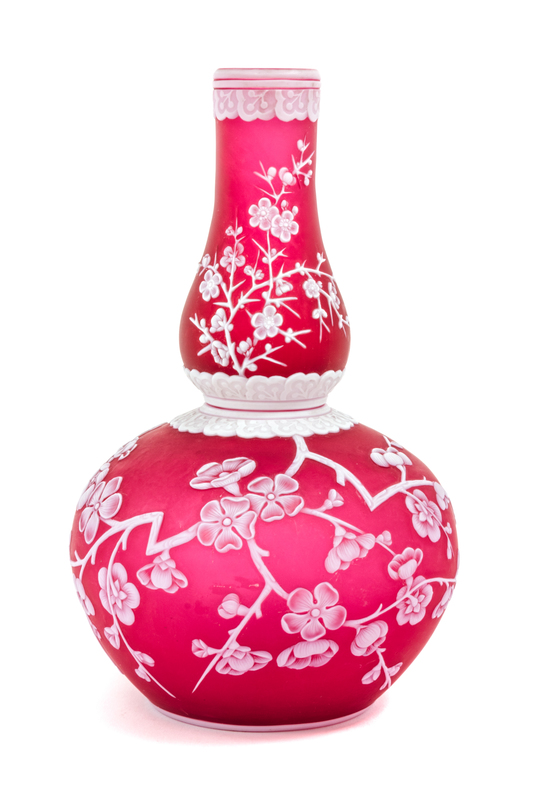a cameo glass vase, of double gourd form with prunus decoration, unmarked
