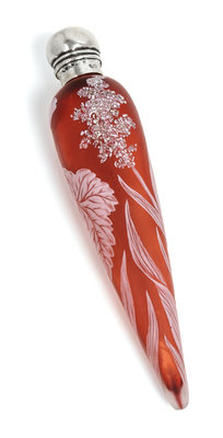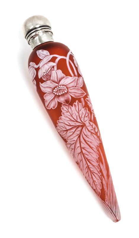 a silver mounted cameo glass perfume bottle, of tapering form with floral decoration