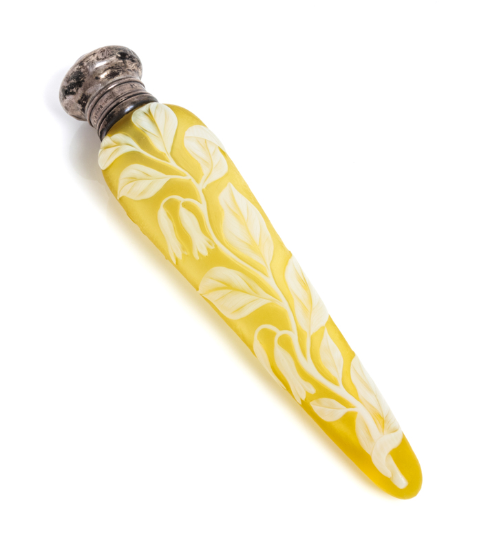 a silver mounted cameo glass perfume bottle, of tapering form with foliate decoration