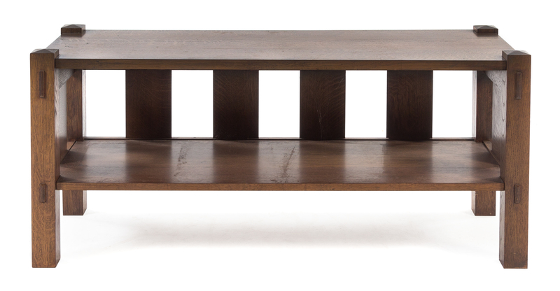an Arts and Crafts style oak low table