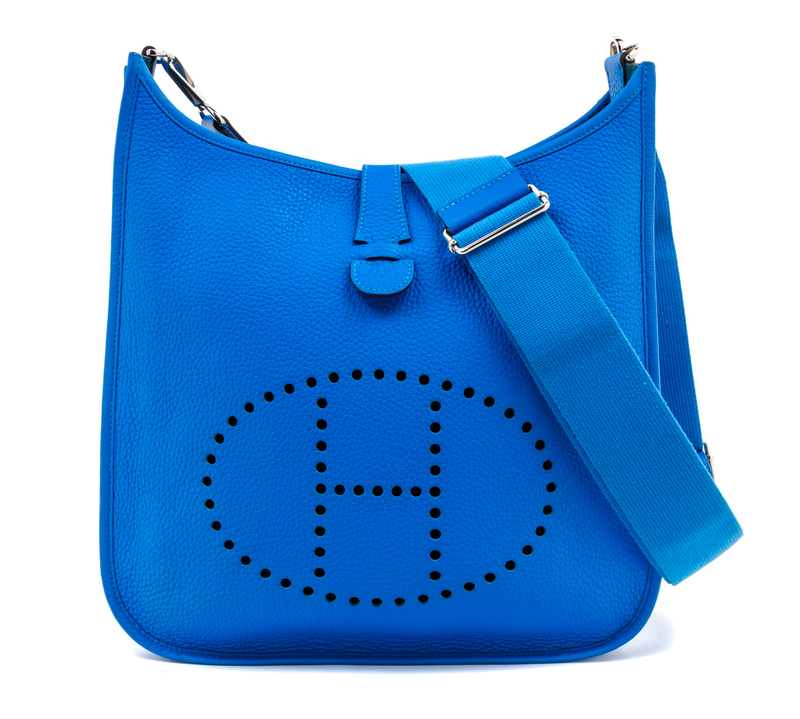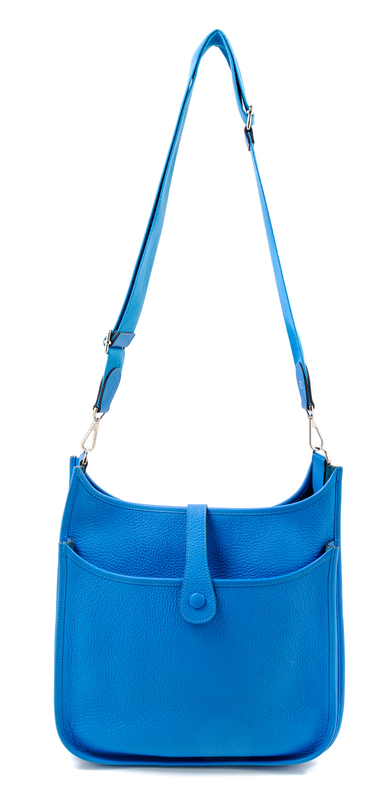An Hermes Blue Clemence Evelyne III GM Handbag,