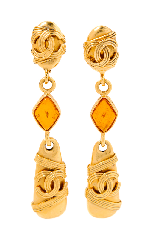 A Pair of Chanel Goldtone Drop Earclips,