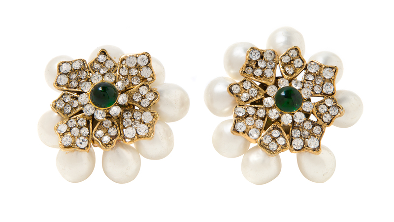 A Pair of Chanel Rhinestone and Faux Pearl Earclips,