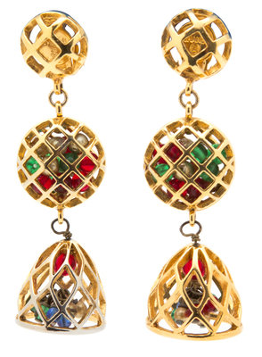 1970s-1980s,with multicolor glass bead and lattice detail.Stamped: Chanel.