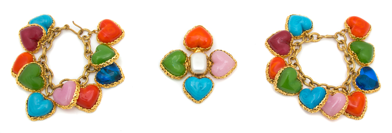 A Chanel Mutlicolor Glass and Goldtone Heart Demi Parure,