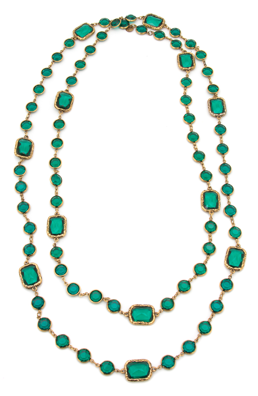 1981,with round and rectangular glass stones and goldtone hardware. Stamped: Chanel.