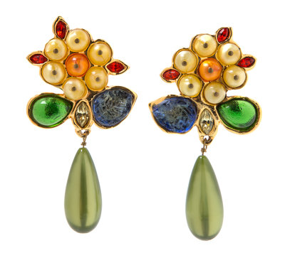 A Pair of Chanel Multicolor Floral Drop Earclips,