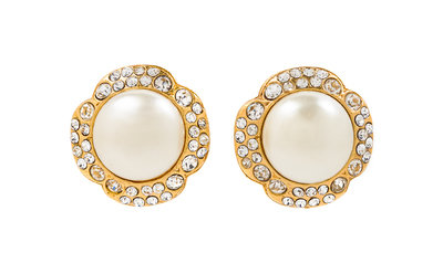 1971-1980,goldtone with a rhinestone border.Stamped: Chanel.
