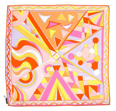with a pink, orange, yellow and lavender pattern. Labeled: Emilio Pucci.