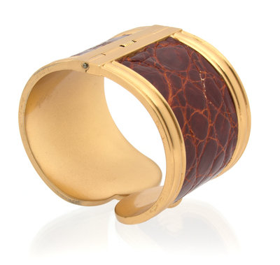Bracelet: 8" circumference, 2" width; Earclips: 2.5" x 2".