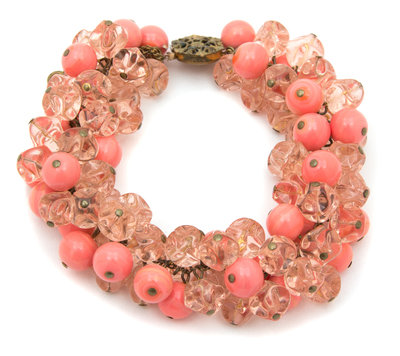 with clear and opaque coral beads and a slide clasp closure.Stamped: Miriam Haskell.