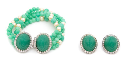 A William de Lillo Jade and Faux Pearl Multistrand Parure,