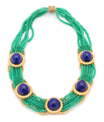 A William de Lillo Jade Cameo Glass and Lapis Lazuli Collar Necklace,