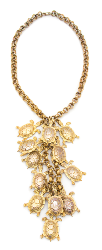 with a heavy link chain and whimsical turtle charms.Stamped: Djonne.