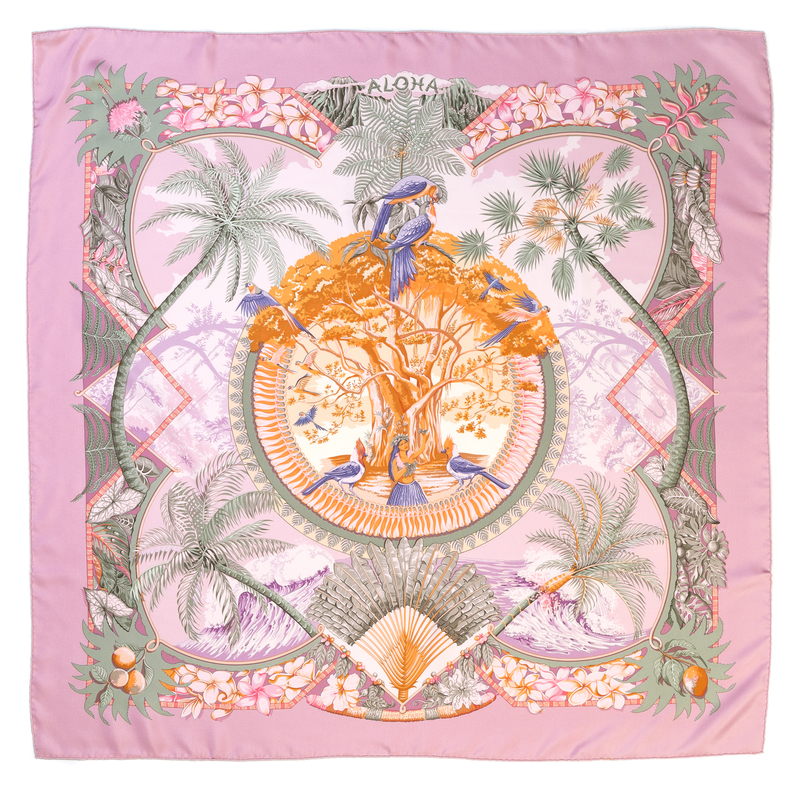 "Aloha" pattern, designed by Laurence Bourthoumieux.Labeled within the print: Hermes.