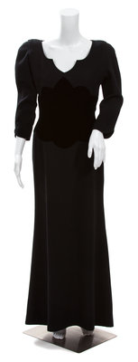 An Oscar de la Renta Black Wool and Velvet Gown,