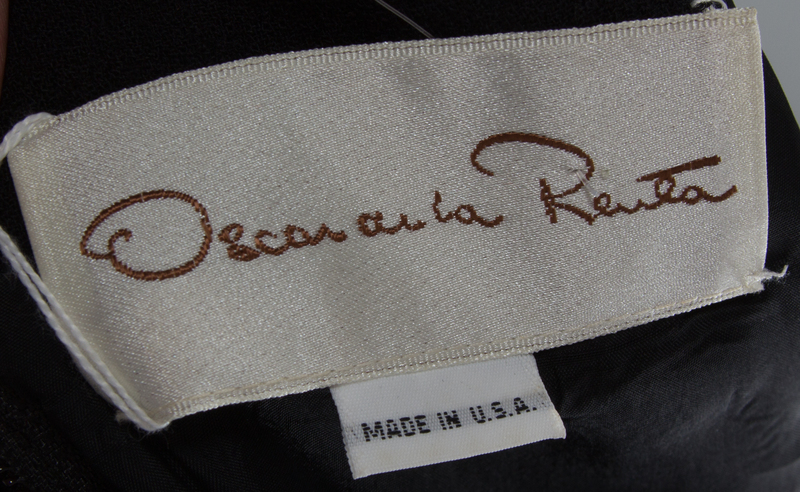 with a scalloped neckline and a straight silhouette.Labeled: Oscar de la Renta.