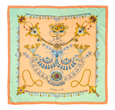 "Parures des Sables" pattern, designed by Laurence Bourthoumieux.Labeled within the print: Hermes.