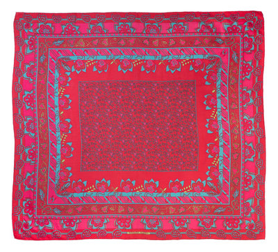 with a red, lime, pink and turquoise floral motif.Labeled within the print: Hermes.