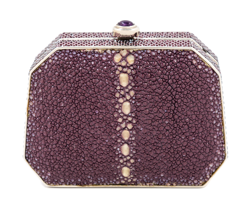 A Judith Leiber Purple Shagreen and Crystal Clutch,