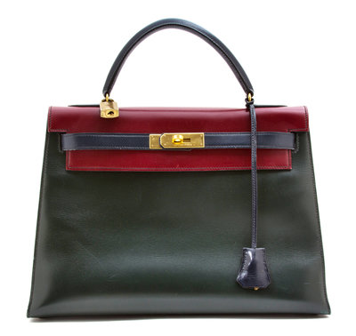 An Hermes Tricolor Box Sellier 32cm Kelly Handbag,