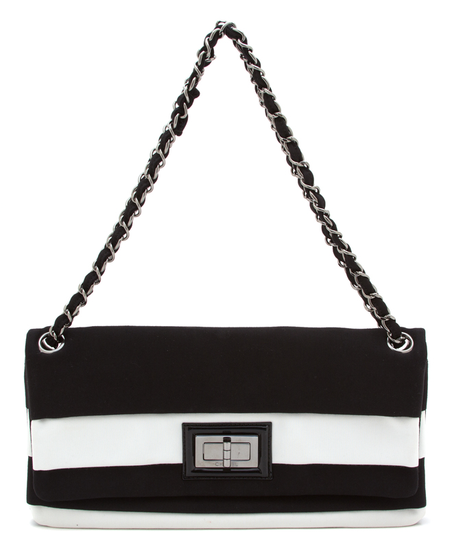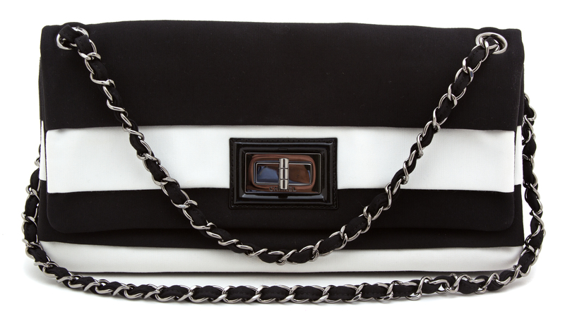 A Chanel Black and White Striped Grosgrain Classic Flap Bag,