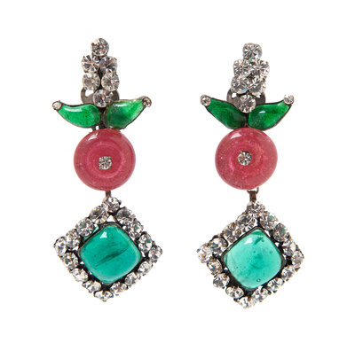 A Pair of Chanel Gripoix and Rhinestone Drop Earclips,