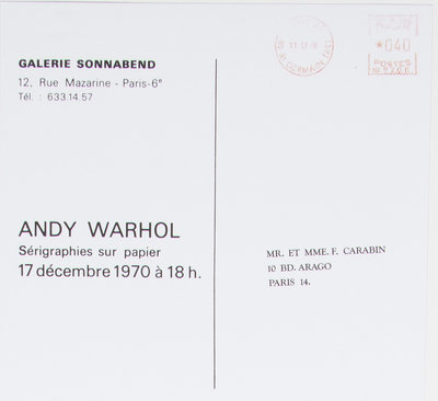 Flowers, 1970 (announcement card for Galerie Sonnabend)