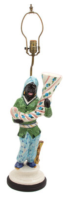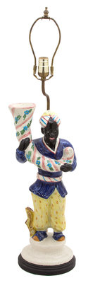 A Pair of Italian Glazed Ceramic Blackamoor Figural Lamps
