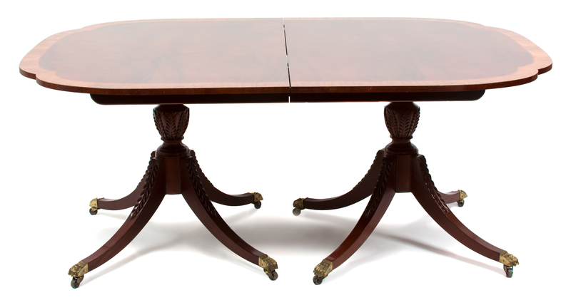 A George III Style Inlaid Mahogany Pedestal Dining Table
