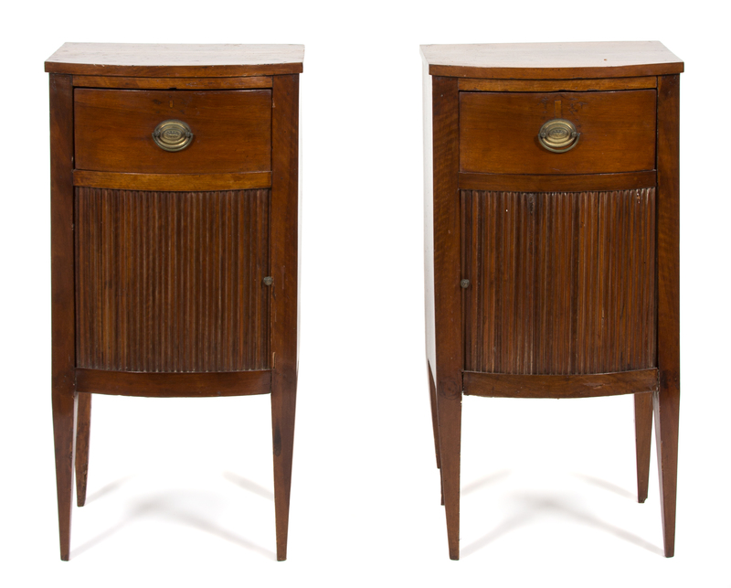 A Pair of Regency Mahogany Bow Front Side Cabinets