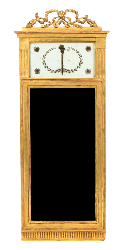 having an inset eglomise panel over a rectangular mirror plate.