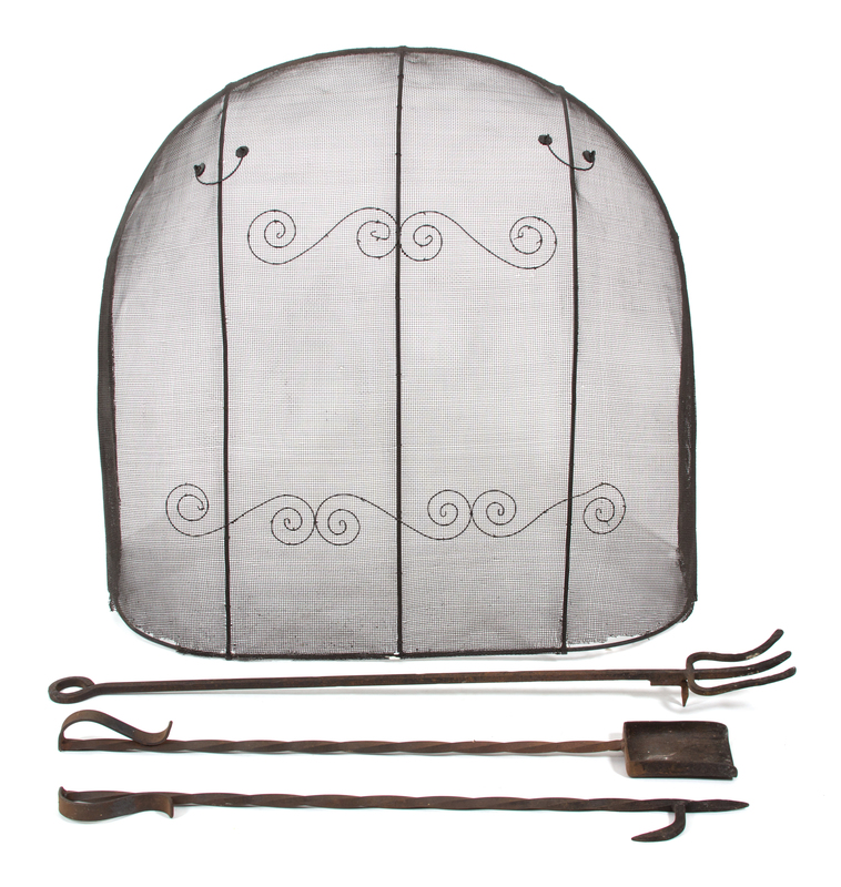 together with three wrought iron fire tools.
