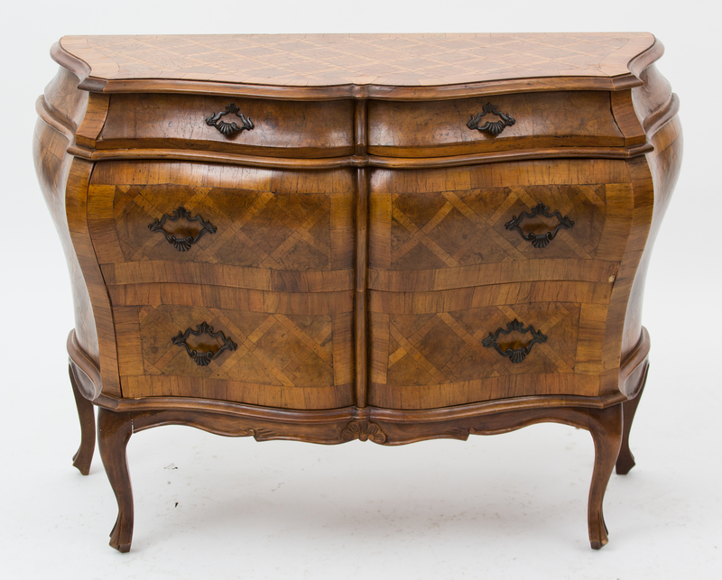 An Italian Bombe Walnut Parquetry Commode