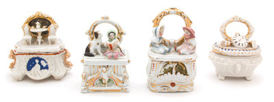 A Group of Four Staffordshire Fairing Trinket Boxes
