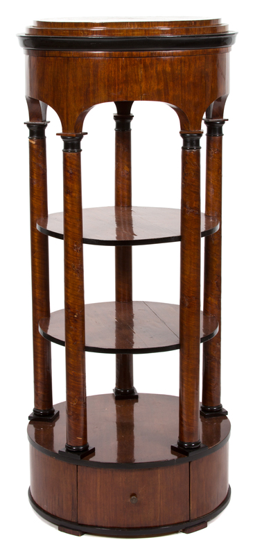 A Biedermeier Mahogany and Partially Ebonized Circular Three-Tier Etagere